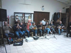 Animation et spectacle à l’occasion de la fête de la descente de la montagne. Belle rencontre vocale et musicale avec une bandas locale au moment du repas.