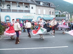 A l’occasion de la transhumance dans le Haut-Salat, participation au défilé et spectacle de danses traditionnelles sur la place.