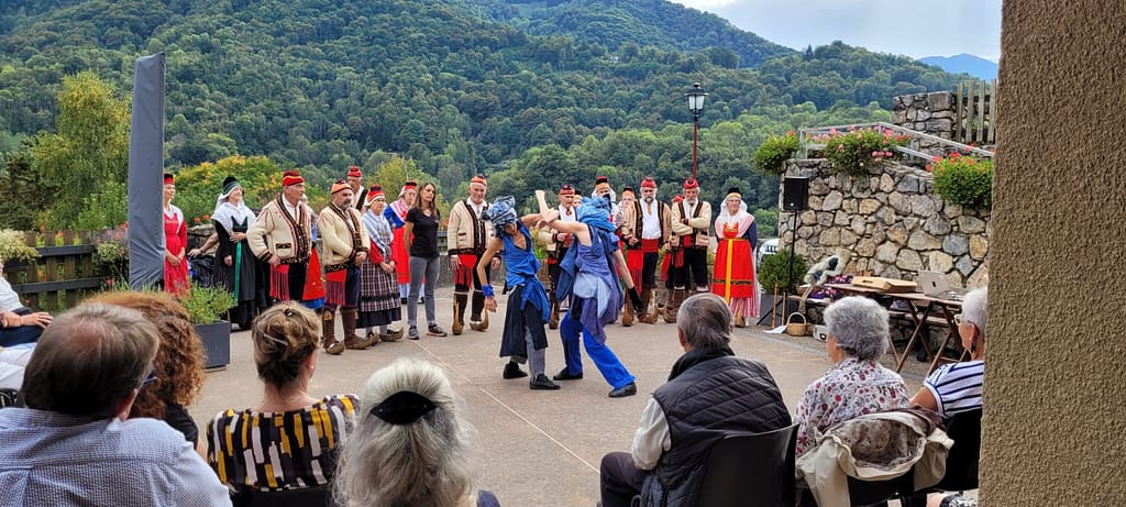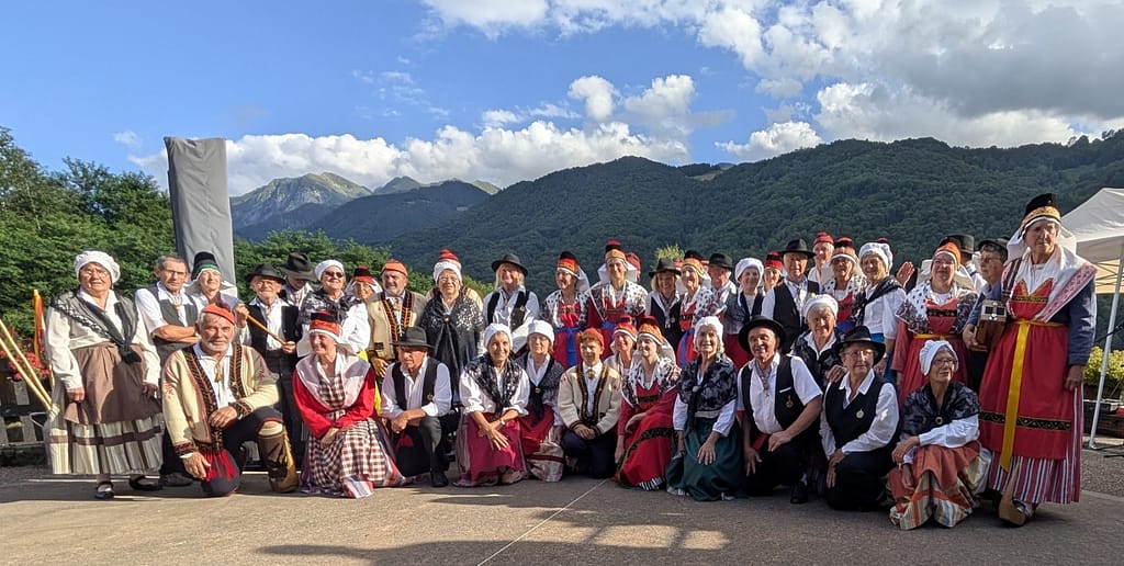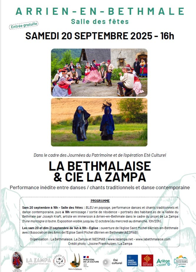 Rencontre avec La Zampa à l’occasion d’une répétition. La compagnie de danses contemporaines « La Zampa » souhaite, après plusieurs phases « d’immersion » pour bien saisir le sens et la culture de la vallée, construire un spectacle qui illustrerait cette rencontre autour de nos deux pratiques. Celui-ci (intitulé : « d’une montagne à l’autre ») sera présenté dans le cadre des journées du patrimoine 2025 à Arrien. Un spectacle supplémentaire est prévu à l’Estive, la scène nationale de Foix et de l’Ariège en juin 2026. La Zampa est venue nous rencontrer et participer à l’une de nos répétitions de danse. Un moyen très concret de vraiment saisir le sens de ces danses et de la culture qu’elles portent en elles.