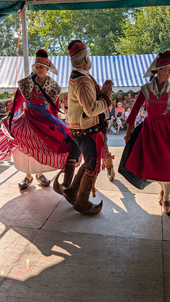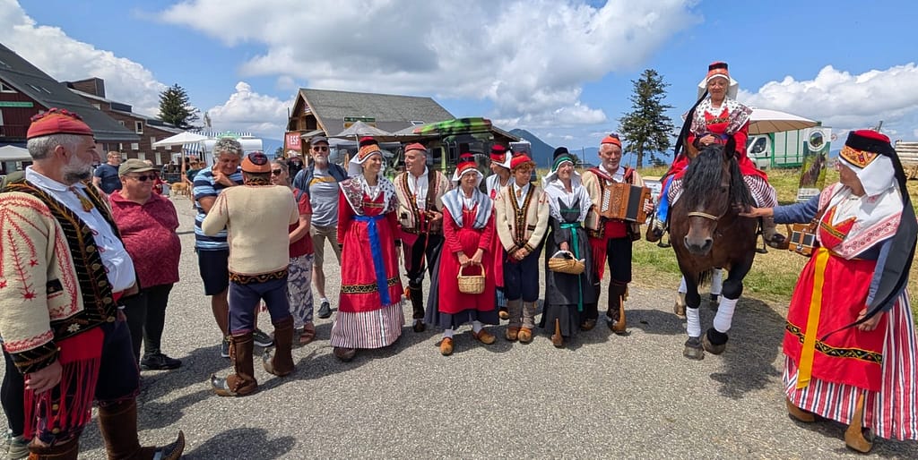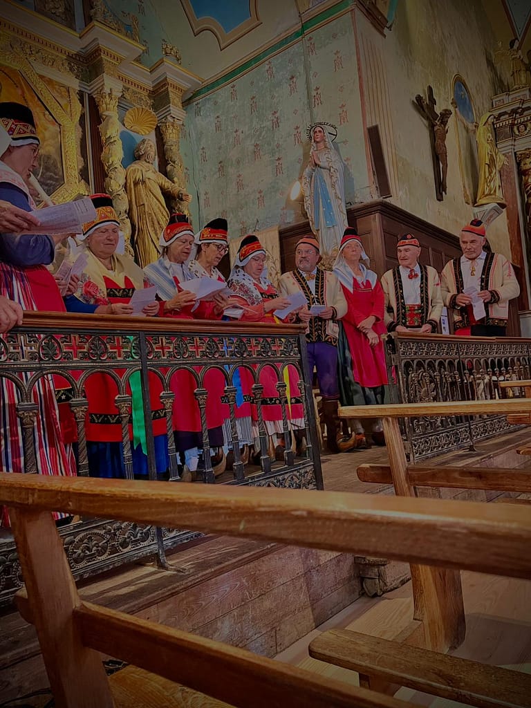 Animation pour la fête : chants en costume pour la messe et animation danses à l’occasion de l’arrivée des chevaux en route vers Campuls.