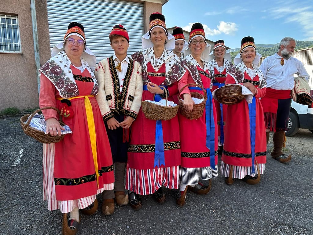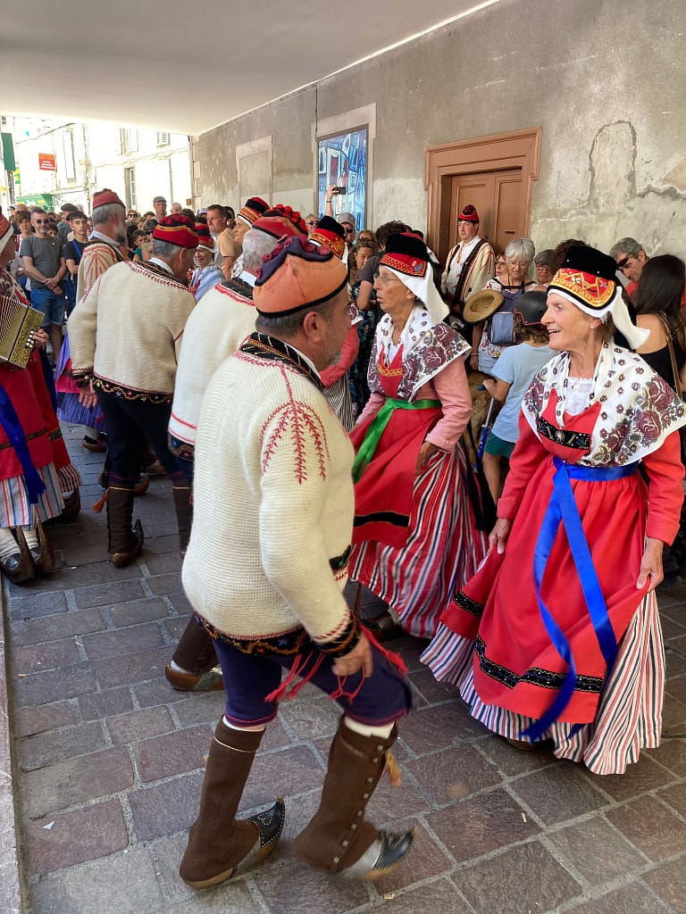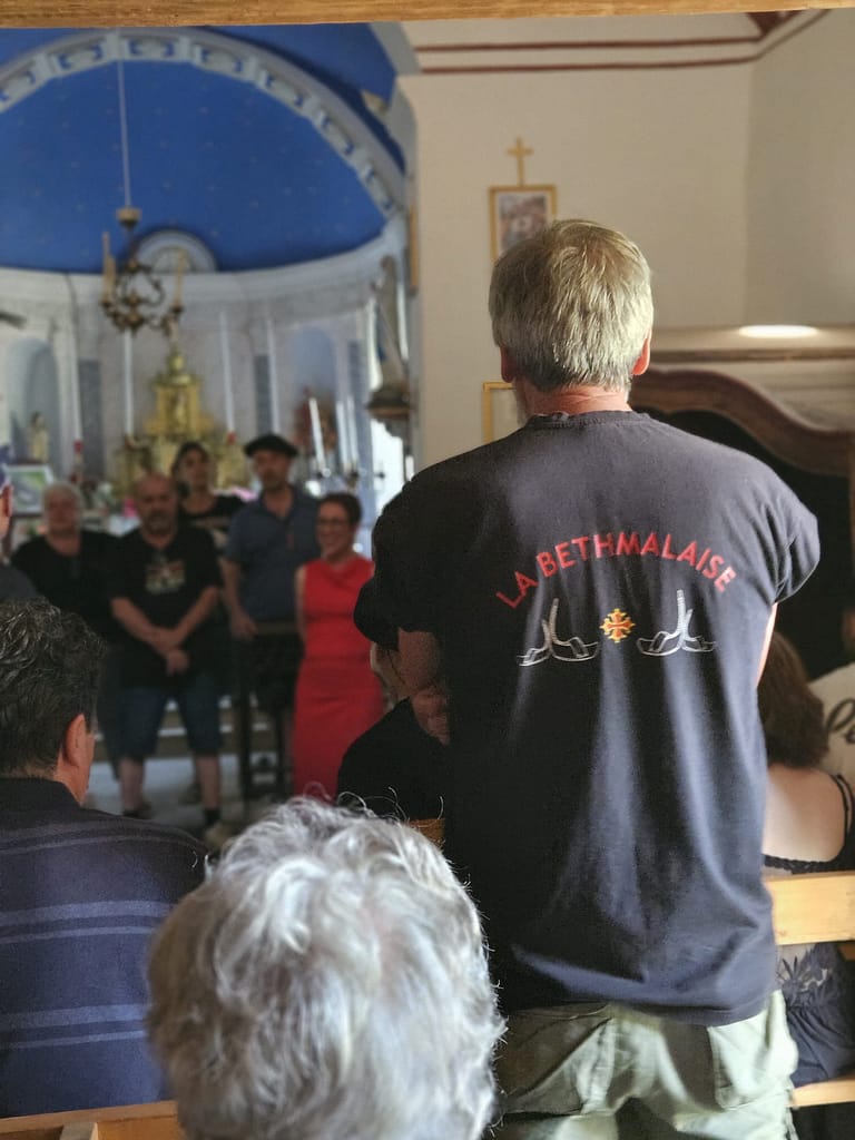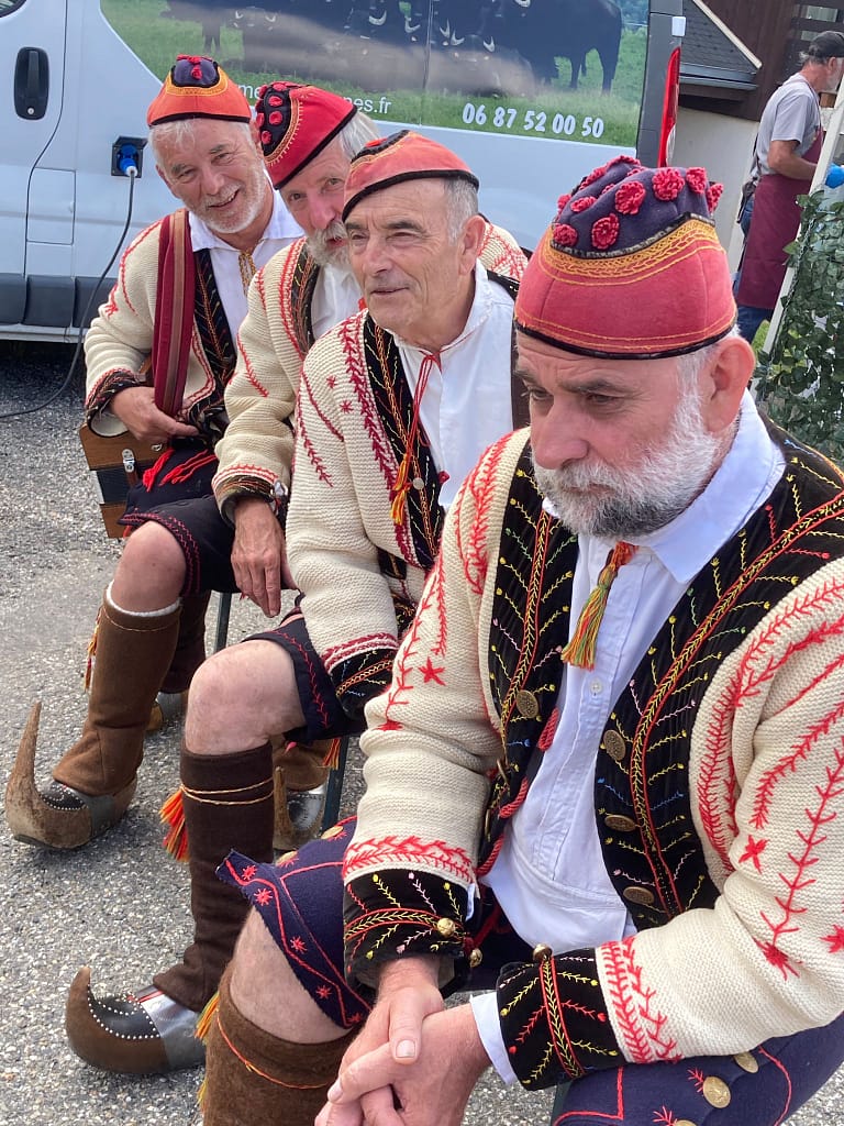 A l’occasion de la fête locale de Bethmale : participation des chanteurs en costume sousune chaleur caniculaire.