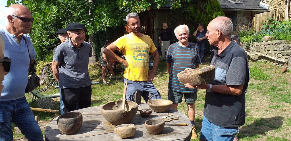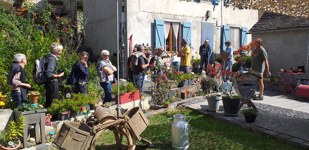A Samortein, le dimanche, deux autres habitants avaient prévu un parcours permettant de découvrir également le bas du village. Un long moment passé dans le jardin de l’un pour admirer tout ce qu’il y avait installé a permis également d’apprendre beaucoup de choses sur l’usage des objets exposés et sur la vie quotidienne des habitants dans les années 1920/1940. La visite de Samortein s’est clôturée par un pot offert aux participants chez “Filoche” dont les propriétaires avaient ouvert l’ancien café. Au-delà de l’ouverture, ils avaient également remis en scène l’ancien mobilier du café et exposé également de nombreux objets anciens.