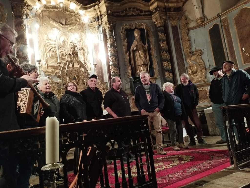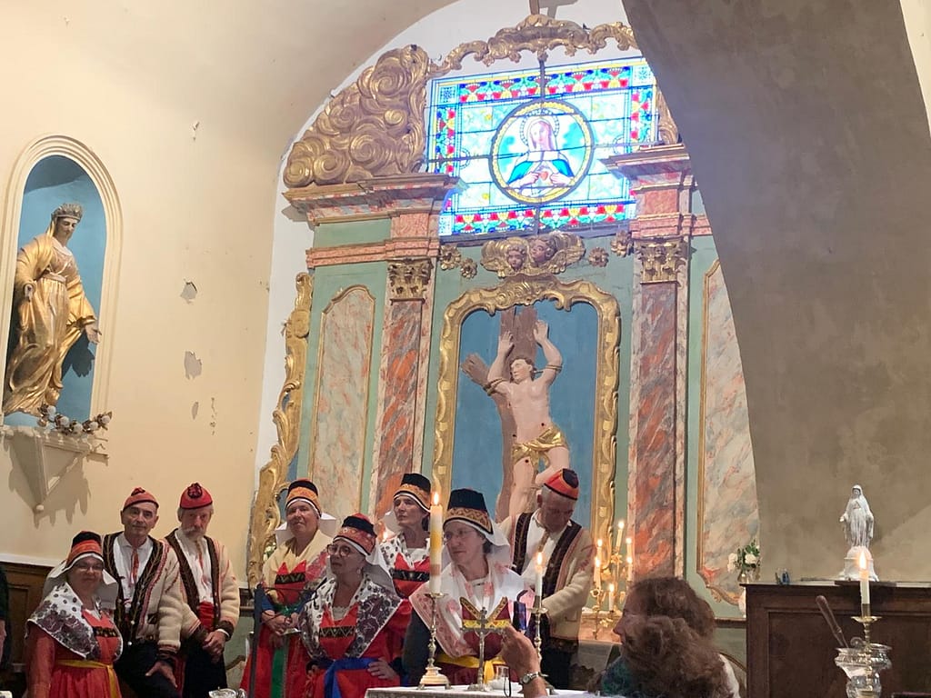 Participation de quelques chanteurs occitans en costume à la messe de Noël.