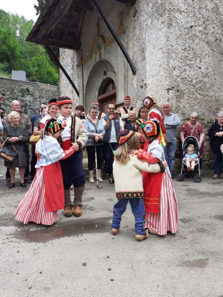 Animation de la fête locale : participation des chanteurs à la messe, spectacle devant l’église avec les enfants (première occasion pour eux et beau succès) et les adultes, animation de l’apéro.