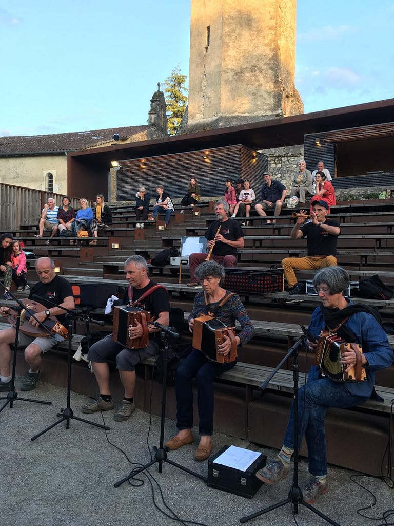 Les musiciens animent leur premier bal après deux ans d’arrêt. Organisé au théâtre en plein air, dans un site exceptionnel, cette formule nouvelle pour les organisateurs a remporté un franc succès de la part des danseurs dont certains étaient venus de très loin.