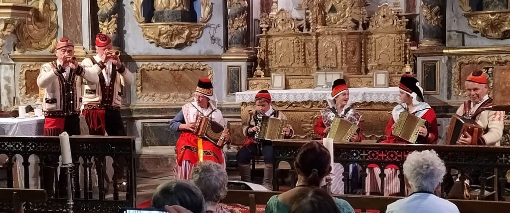 Participation des chanteurs Occitans à la messe de la fête locale et spectacle de danses dans l’après-midi.