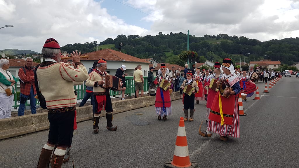 Pour Autrefois le Couserans : participation au défilé, animation du repas. Une belle rencontre avec un groupe Basque.