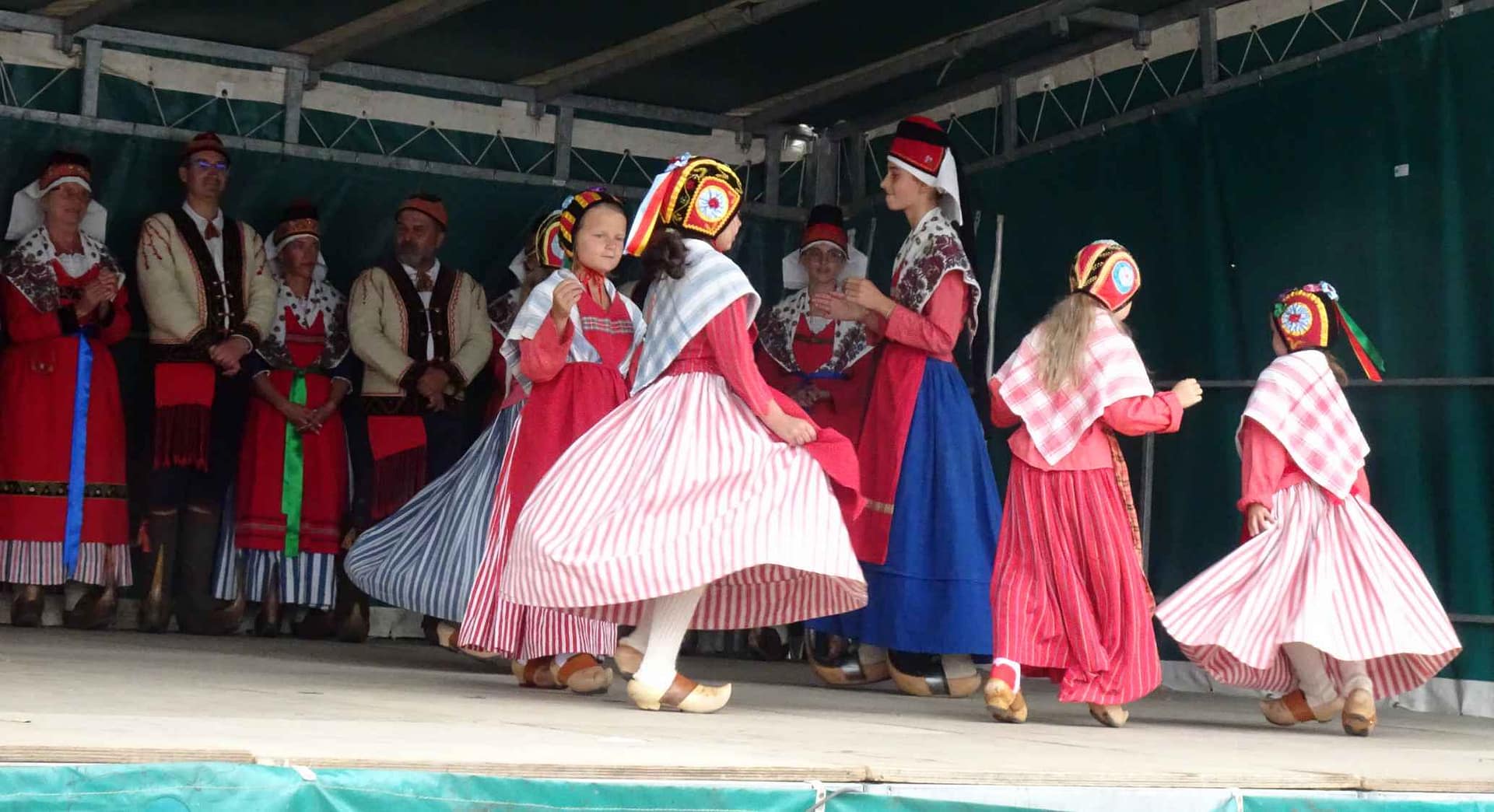 L’équipe des danseurs a été très bien accueillie. Le samedi après-midi, sous une chaleur torride, un spectacle avec les deux groupes a eu lieu dans le Square Charles De Gaulle, à l’ombre de grands arbres. L’animation s’est poursuivie par des danses partagées avec le public en faisant alterner les deux groupes.